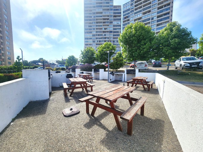 El edificio cuenta hall de acceso, ascensores, 2 piscinas exteriores, áreas verdes, sala multiuso equipada, gimnasio, lavandería, quinchos, cancha de fútbol, conserjería y accesos controlados las 24 hrs.