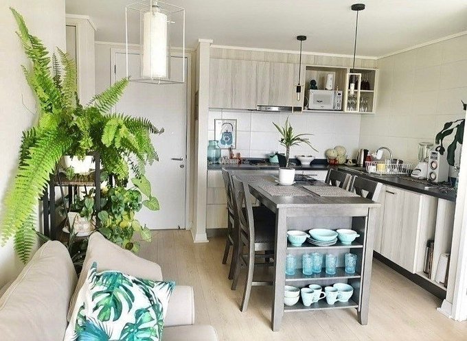 Piso Flotante en living comedor, cocina y dormitorios , ceramica en baños , Ventanas Termopanel con marcos PVC. Cubierta de mármol en el baño y melanina en la cocina. Cocina amoblada y equipada con horno eléctrico empotrado, encimera eléctrica de cuatro platos, campana. Luminarias instaladas, cortinas roller dia/noche en todos los ambientes . Calefón