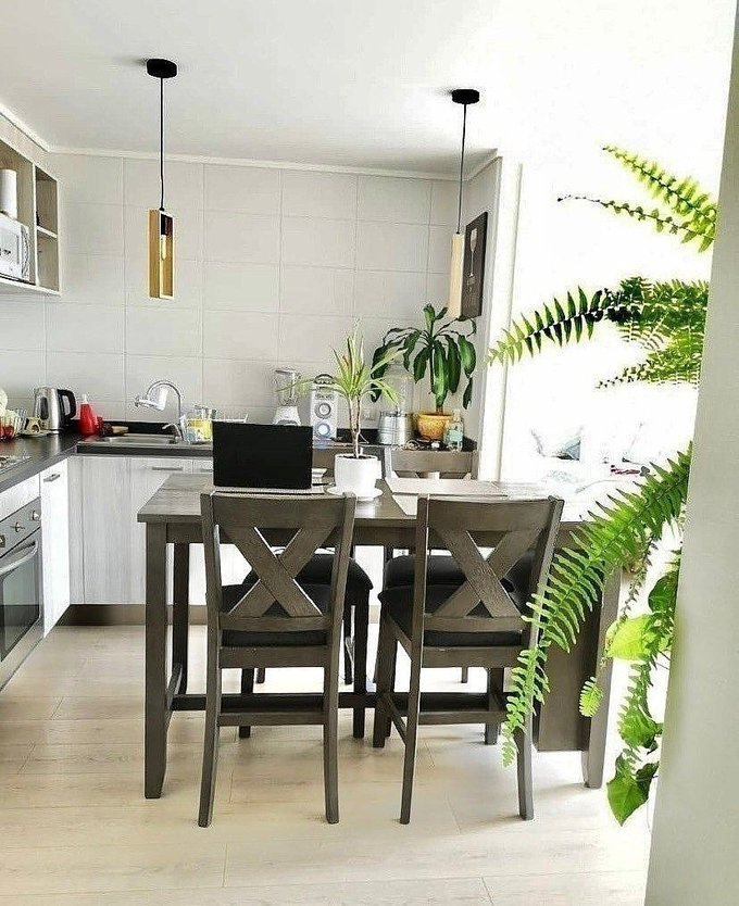 Piso Flotante en living comedor, cocina y dormitorios , ceramica en baños , Ventanas Termopanel con marcos PVC. Cubierta de mármol en el baño y melanina en la cocina. Cocina amoblada y equipada con horno eléctrico empotrado, encimera eléctrica de cuatro platos, campana. Luminarias instaladas, cortinas roller dia/noche en todos los ambientes . Calefón