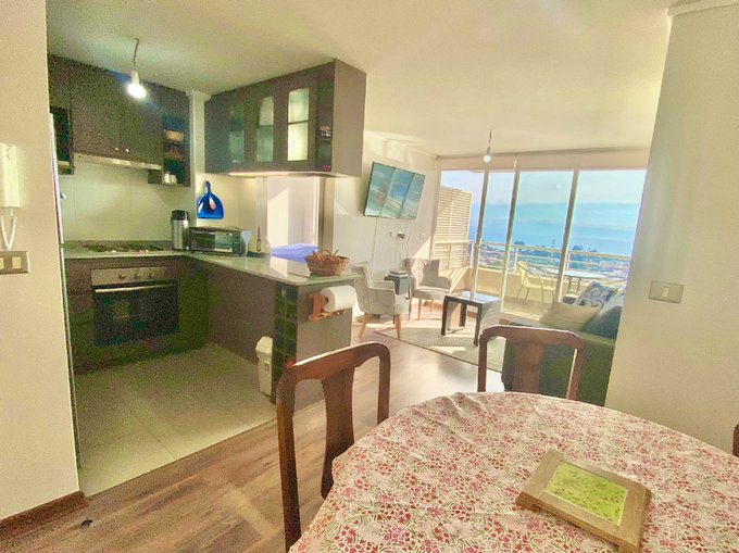 Se arrienda departamento en Concón, Lomas de Montemar, vista despejada al océano.