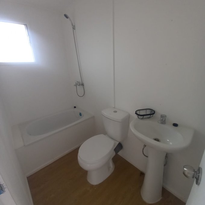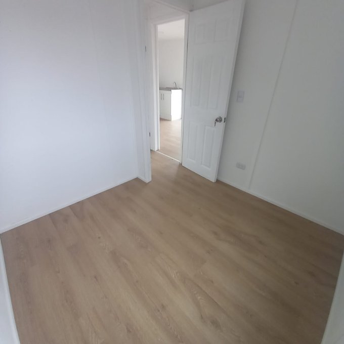 El Departamento Modular consta de 2 dormitorios sin closets, 1 baño con tina, cocina equipada con encimera vitrocerámica táctil y horno empotrado.