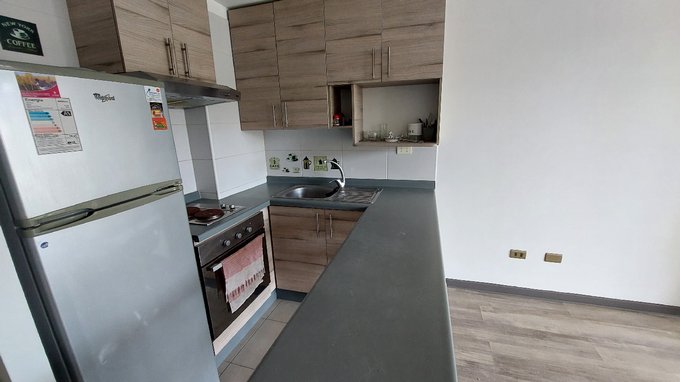 MRB Propiedades arrienda por año corrido depto de 1 dorm 1 baño. Cuenta con una cama de 2 plazas y Refrigerador, cocina encimera nueva. terraza. Con un estacionamiento. Edificio cuenta con lavandería, piscina y sala multiple. Gastos comunes incluidos, cuentas de servicios son aparte, agua, luz y agua caliente. Disponible desde el 1 de Mayo.