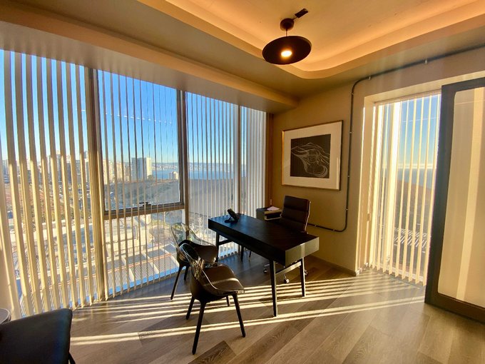 Finalmente encontramos el despacho principal, con vista despejadísima hacia la Bahia de Valparaiso, equipado con mobiliario y comodidades para brindar una experiencia de servicio única.