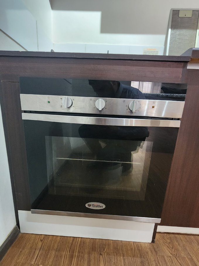 Cocina amoblada y equipada con horno electrico, cocina a gas y encimera.