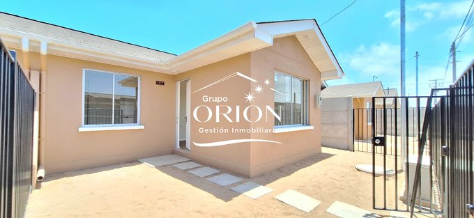 Grupo Orión Gestión Inmobiliaria, arrienda casa nueva de un piso, living comedor, cocina equipada con muebles encimera y horno, 3 dormitorios con closet, 1 baño con tina shower door, pisos vinílicos en living comedor y dormitorios, pisos cerámica en cocina y baño, entrada de auto, patio.