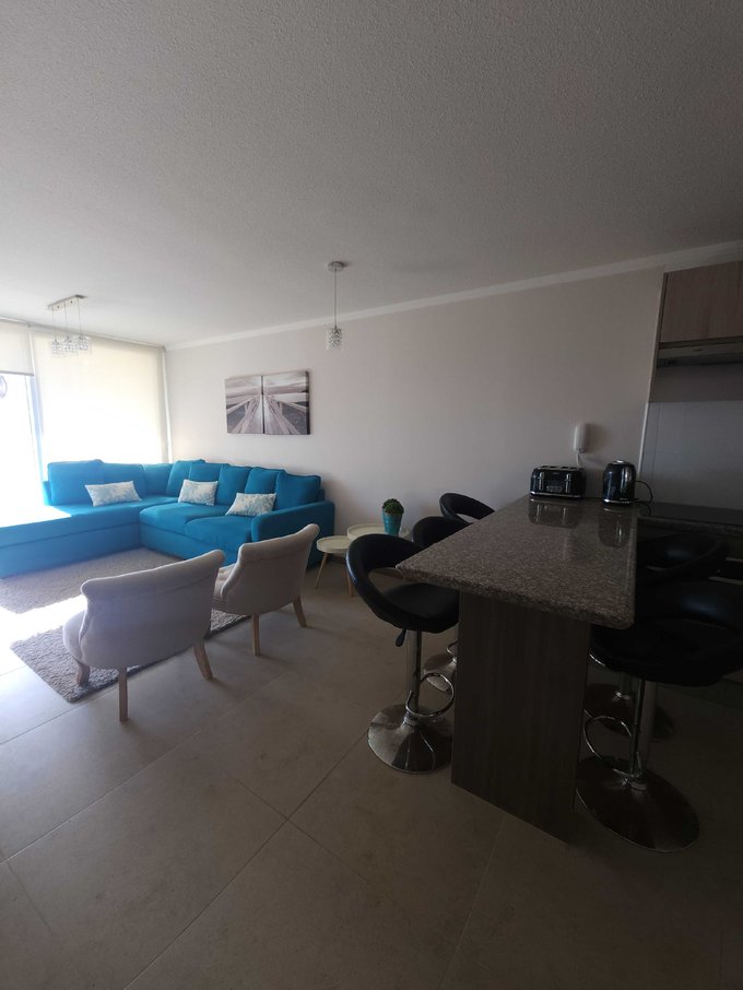 Excelente opción de arriendo año corrido amoblado en Condominio Marina Horizonte III, avda. Los Pescadores, Coquimbo. Este amplio y cómodo departamento cuenta con 3 habitaciones, 2 baños, living amplio con terraza y la vista al mar, inigualable, cocina central, sistema eléctrico, agua caliente por caldera (valor consumo agua caliente se paga aparte) conexión para lavadora, opcional ya que el condominio ofrece lavandería, sistema de seguridad, piscina, quinchos, áreas comunes, estacionamientos de visita, el departamento cuenta con un estacionamiento de uso exclusivo.