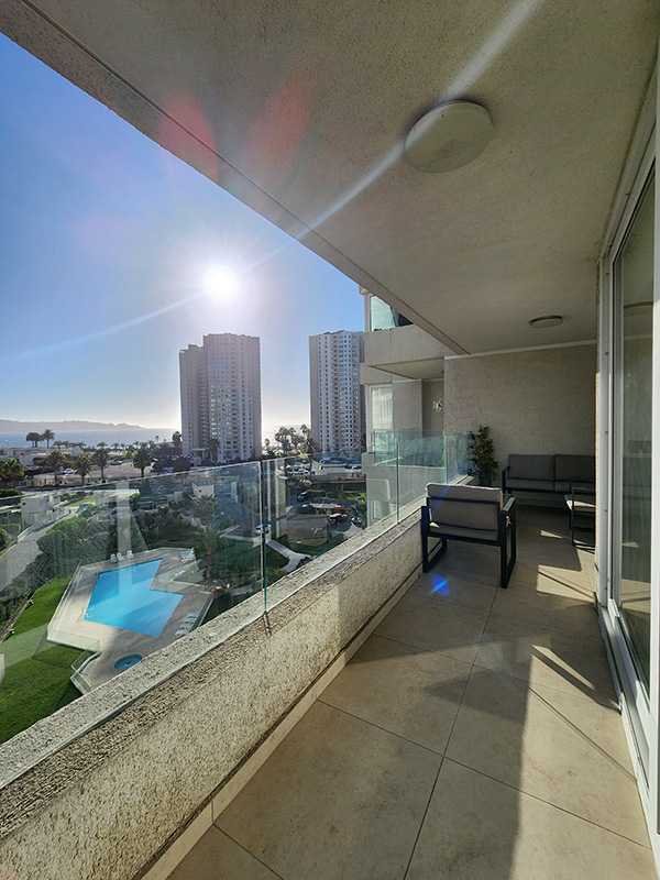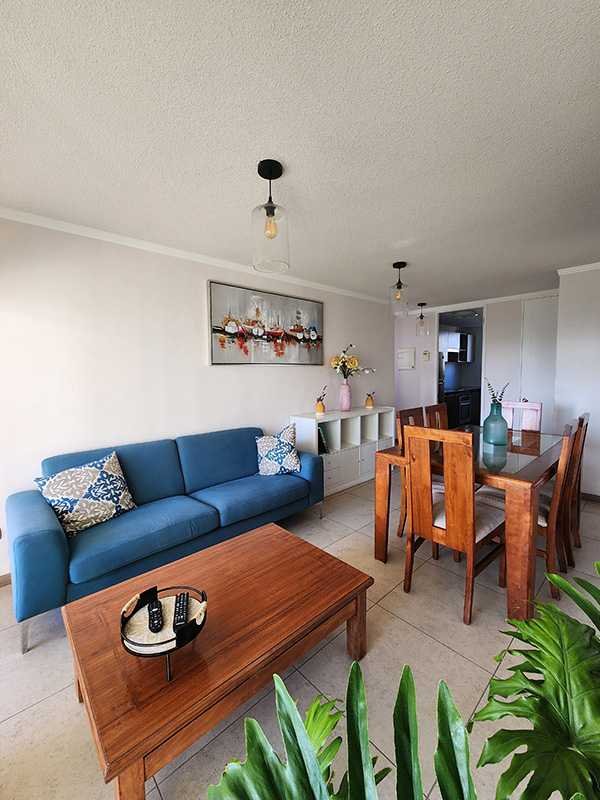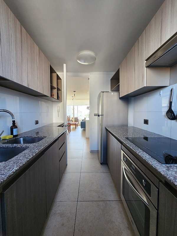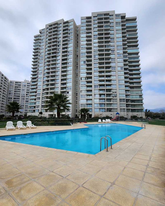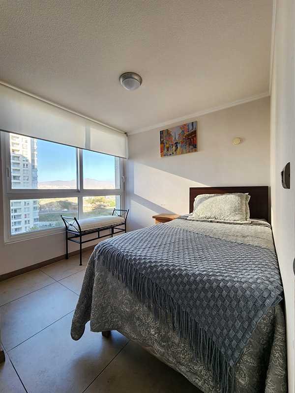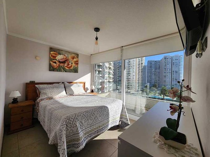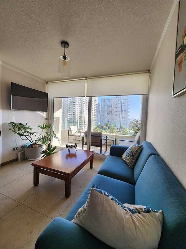 Departamento en el piso 8, amoblado de 90 m con orientación poniente, que permite disfrutar de luminosas tardes y agradables atardeceres.. Equipado para 5 personas, ofrece 3 amplios dormitorios, el principal con baño en suite y walk-in closet, 2 baños completos con lavadora y secadora incluido, consta de una amplia terraza con vista despejada hacia al mar.