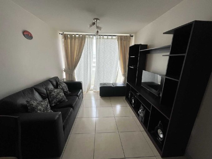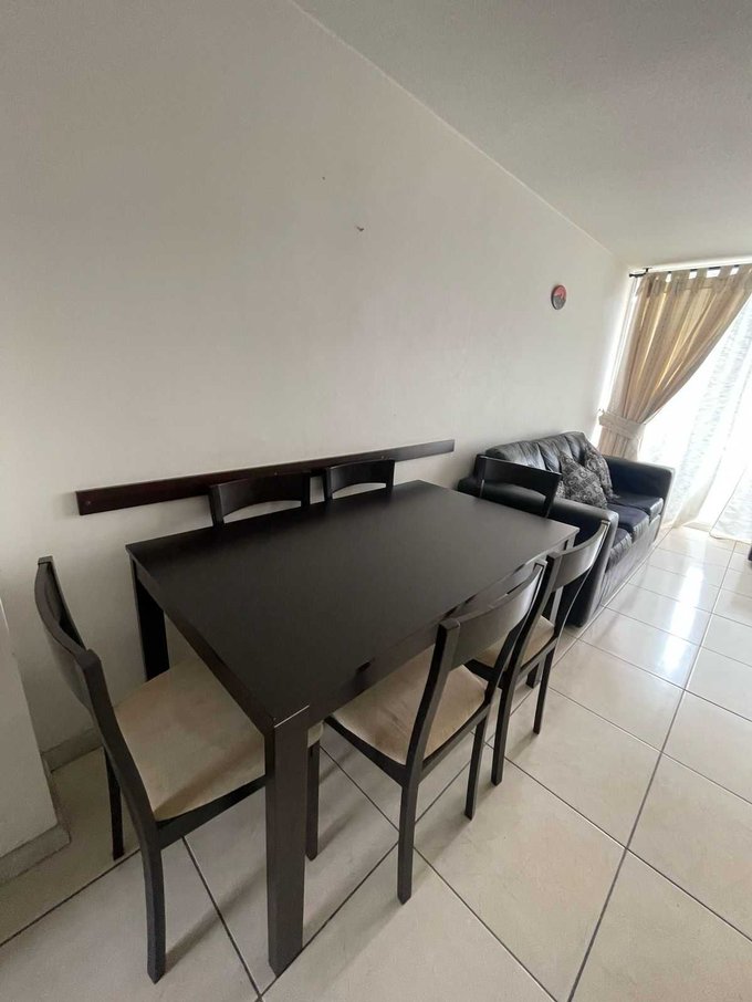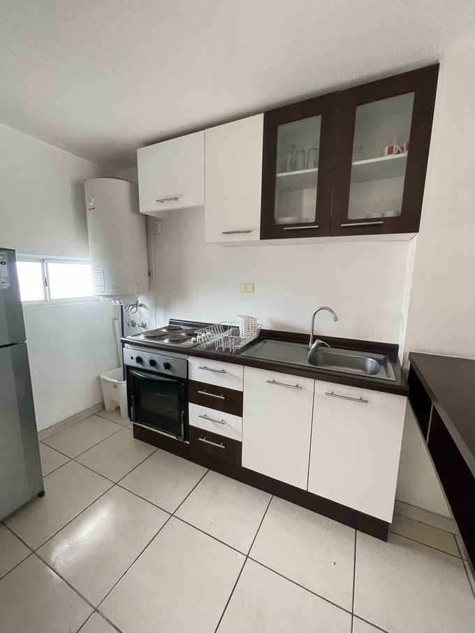 Departamento ubicado en piso 5 con ascensor, cuenta con 46 metros cuadrados construidos y se divide en dos dormitorios, un baño, living comedor, cocina americana y amoblada.