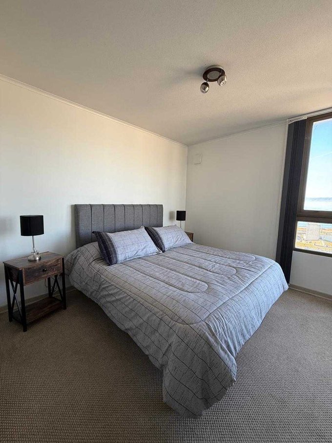 Departamento ubicado en piso once con ascenso, cuenta con 62 metros cuadrados construidos y se divide en tres dormitorios, un baño, living comedor, cocina americana y amoblada.
