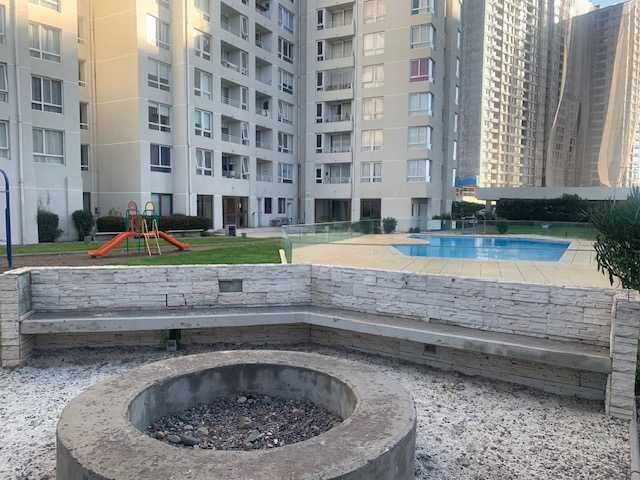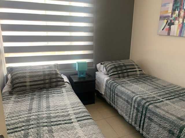 El condominio cuenta con piscina, quincho, juegos infantiles, cancha multiuso, sala de wi fi, sala multiuso, sala de juegos, lavandería, accesos controlados, conserjería, seguridad 24 horas y estacionamiento de visitas.