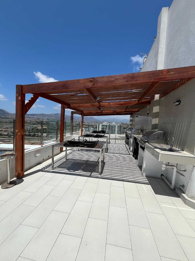quincho panorámico con vista a toda la bahía, areas verdes, salones multiusos, lavandería.