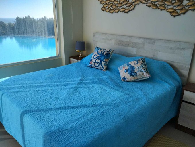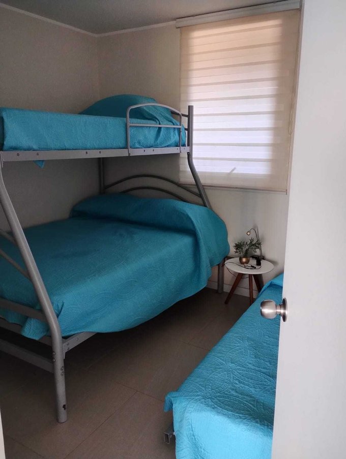 Arriendo departamento nuevo, AMOBLADO, ubicado en el exclusivo condominio Lagunamar de Las Cruces. Depto en un quinto piso con una hermosa vista a la laguna y al bosque. Posee 2 dormitorios de igual tamaño (uno en suite), cocina americana, logia separada, amplia terraza, bodega y estacionamiento. Se encuentra ubicado en un encantador balneario de Las Cruces, El Tabo. El condominio posee una hermosa laguna navegable, playa de arenas blancas, 2 piscinas, muelle, club náutico con embarcadero de kayak, y botes livianos, senderos para caminar, bosque, jardines, juegos infantiles, gimnasio, multi canchas, sala de eventos, lavandería y quinchos. El condominio cuenta con control de acceso las 24 hrs y cámaras de seguridad. Posee una amplia terraza de 8 m la que se encuentra cerrada con malla de seguridad. Valor del arriendo es de $800.000 incluidos los gastos comunes.