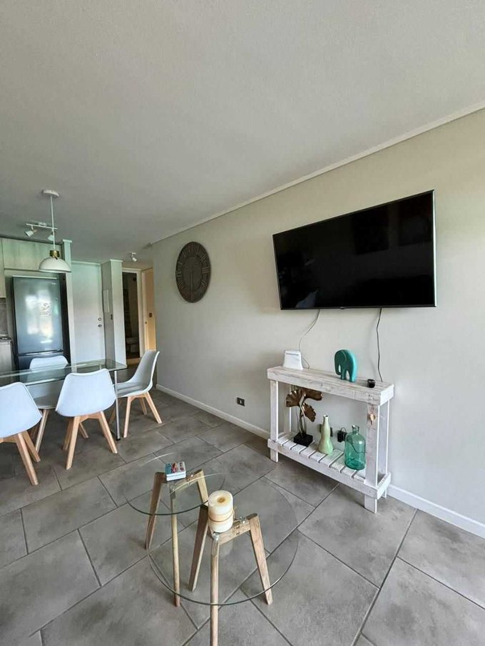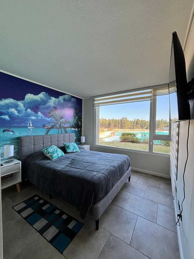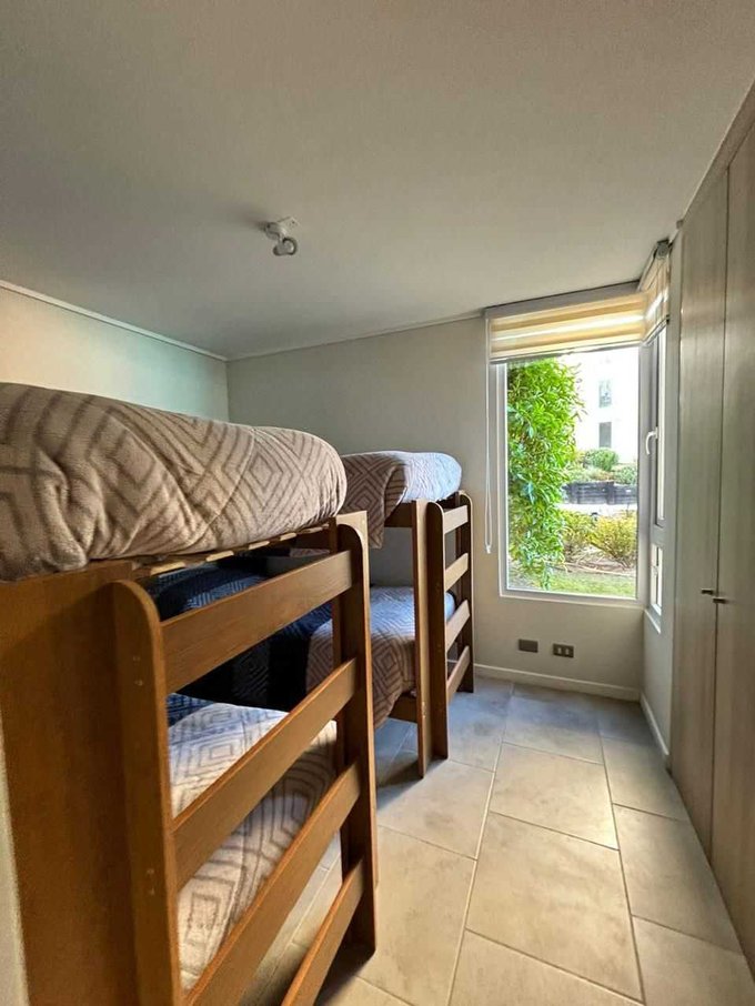 Arriendo amplio depto. en exclusivo condominio de Las Cruces, tiene tres dormitorios grandes y dos baños, cocina americana, living comedor, logia, amplia terraza con vista a la laguna, estacionamiento y bodega, además posee un patio de 100 mt2, un espacio óptimo para descansar y disfrutar, es el único depto. que cuenta con patio por estar ubicado en primer piso.