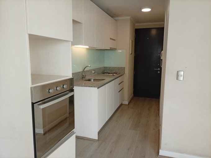 La cocina cuenta con encimera, campana y horno , además de amplios muebles para guardar. Baño con instalación para lavadora . Orientación oriente . Edificio con muy buenas áreas comunes: piscina , quinchos para compartir , bicicletero cerrado , salón de eventos , acceso controlado y cámaras de seguridad . Comunidad tranquila y con excelente acceso a servicios: supermercado al lado .