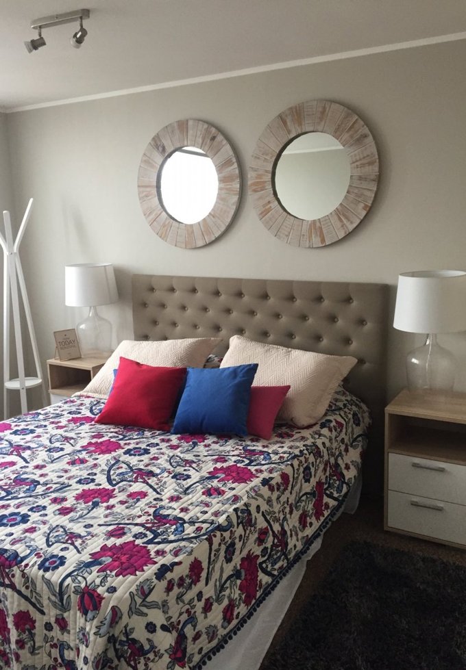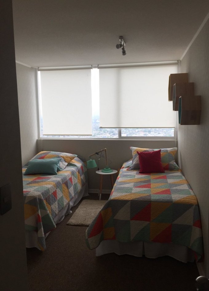 Amplio departamento de 2 dormitorio y 2 baños estilo mariposa en ambos caben camas de dos plazas .