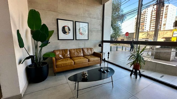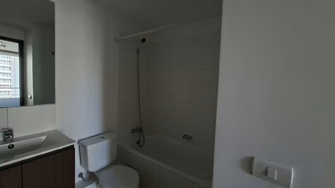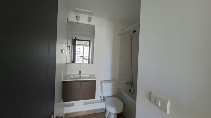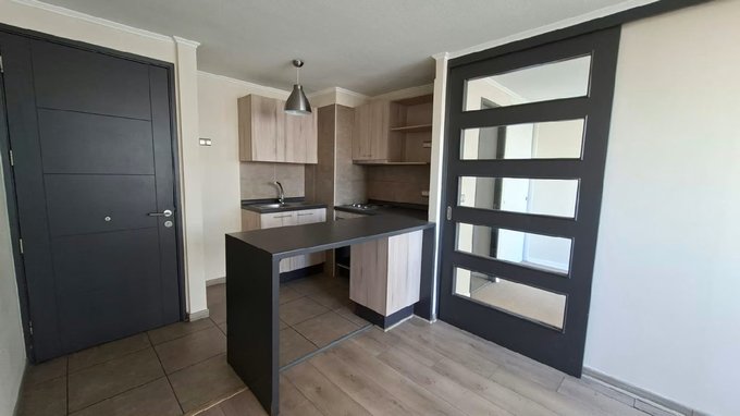 Departamento en ARRIENDO, un baño en suite, cocina americana equipada con encimera 2 platos, horno eléctrico, , balcón, edificio cuenta con quincho, piscina centro de eventos, lavanderia, gimnasio. Ubicado cercano a metro Ecuador y padre hurtado, hospital bicentenario y teletón, centros comerciales, universidad, supermercados, centros comerciales, restaurantes entre otros.