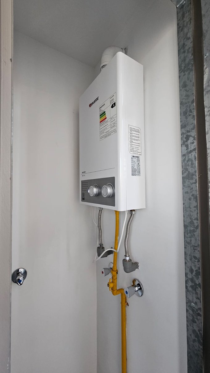 Calefón , con medidor individual para cada departamento.