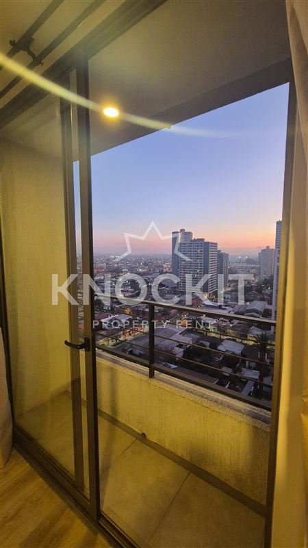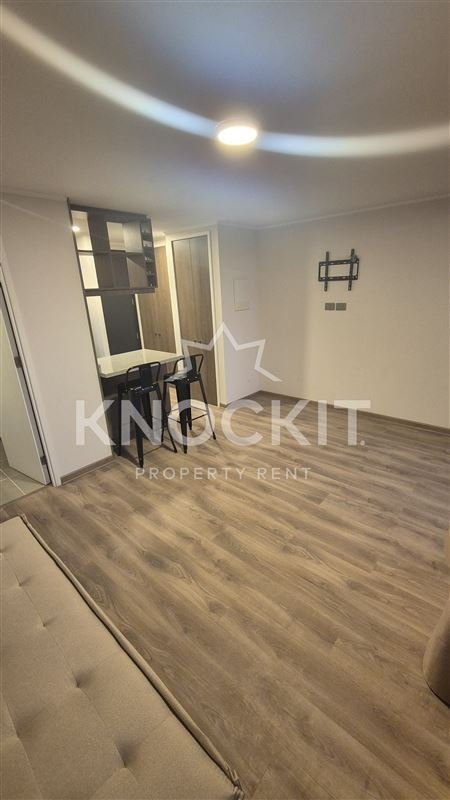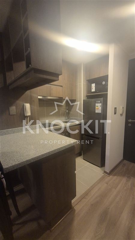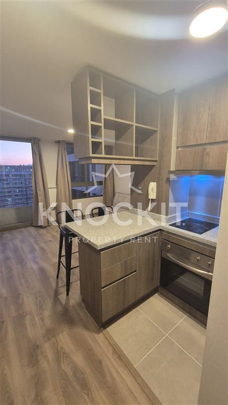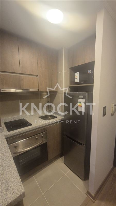 Se Arrienda Departamento Studio Amoblado con Cocina equipada con Horno Eléctrico, Campana, Encimera de Vitrocerámica, Gabinetes, Estantes, Refrigerador y Microondas; Baño con Ducha y Tina; Living Comedor Habitación equipado con Taburetes, Calefactor y Cortinas, con Acceso a Balcón.