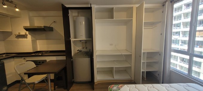 Departamento semi amoblado, incluye equipamiento de las fotos: Cama de 2 plaza, velador, lavadora, Frigobar, encimera, horno eléctrico, sillas