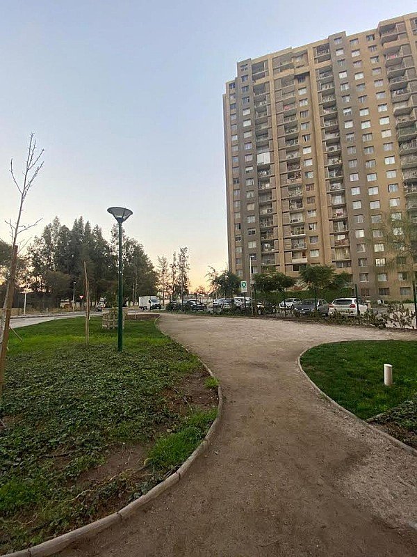 ** El edificio condominio Barrios del parque Santiago cuenta con acceso controlado las 24 hrs en conserjería, salón multiuso, piscina, lavandería, quincho, ascensores, estacionamiento de visitas y abundante áreas verdes.