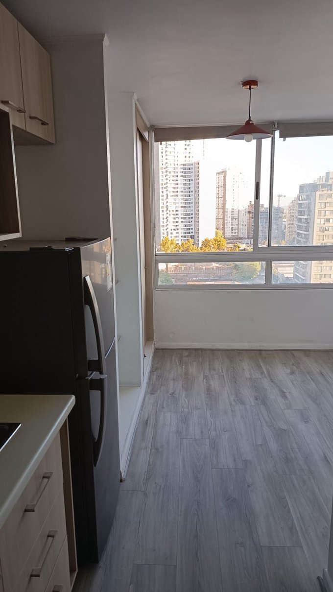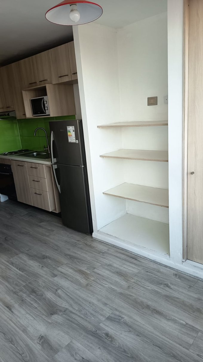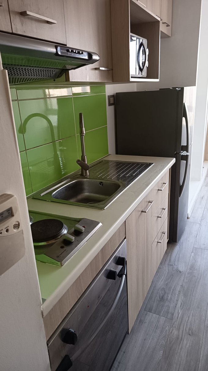 Propiedades Leiva Arrienda excelente Departamento Estudio, en Estación Central , equipado con encimera de dos platos, horno eléctrico, refrigerador, microondas, closet, baño con tina, vista sur, piso flotante, doble chapa en puerta. Edificio con conserjeria 24/7, piscina, salón gourmet equipado, quincho , lavandería, enrolamiento de huella digital. Cercano a metro san Alberto Hurtado, colegios, universidades, supermercado, banco estado, comisaria, servicentro copec, restaurantes y almacenes de barrio. Ideal para persona sola, estudiantes o pareja.