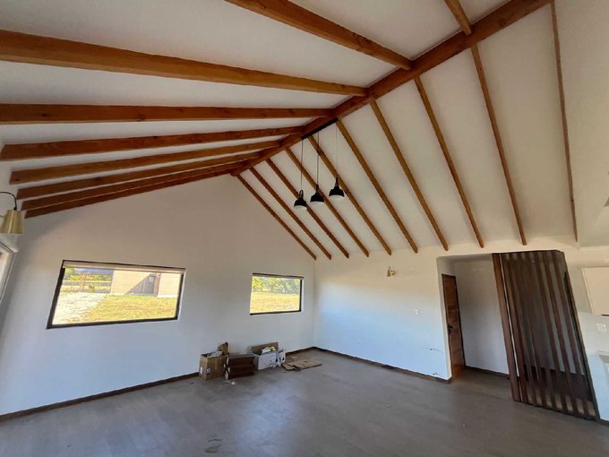 Además, destaca por sus vigas expuestas en el living-comedor, que aportan un toque de calidez y estilo.