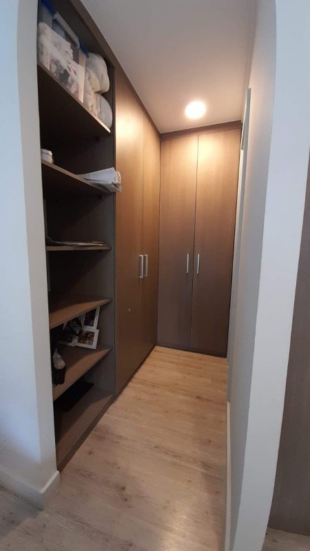 Hacia la izquierda a se encuentra un pasillo de distribución que comunica con un baño de visitas completo con tina, luego una pieza (para dos camas) con closet, al final del pasillo se encuentra la pieza principal en suite (con baño privado) y Walking clóset.