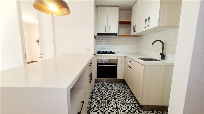 Cocina recién remodelada, encimera y hornos mejorados a los originales, cortinas roller y focos, piso de cocina y terraza de cerámica con diseño