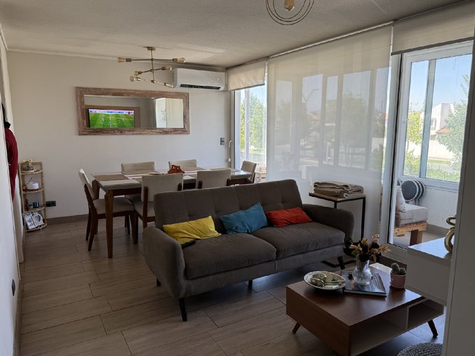 El condominio cuenta con un completo equipamiento con dos piscinas (una de adultos y otra para niños) jardines, juegos infantiles, sala multiuso, sala para niños, gimnasio, quinchos, bicicleteros, lavandería y estacionamientos de visita. Acceso controlado, cámaras de seguridad en espacios comunes y conserjería 24/7.