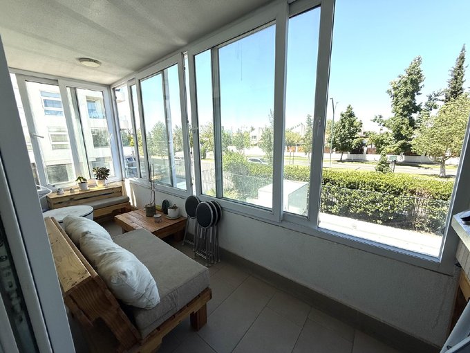 El condominio cuenta con un completo equipamiento con dos piscinas (una de adultos y otra para niños) jardines, juegos infantiles, sala multiuso, sala para niños, gimnasio, quinchos, bicicleteros, lavandería y estacionamientos de visita. Acceso controlado, cámaras de seguridad en espacios comunes y conserjería 24/7.