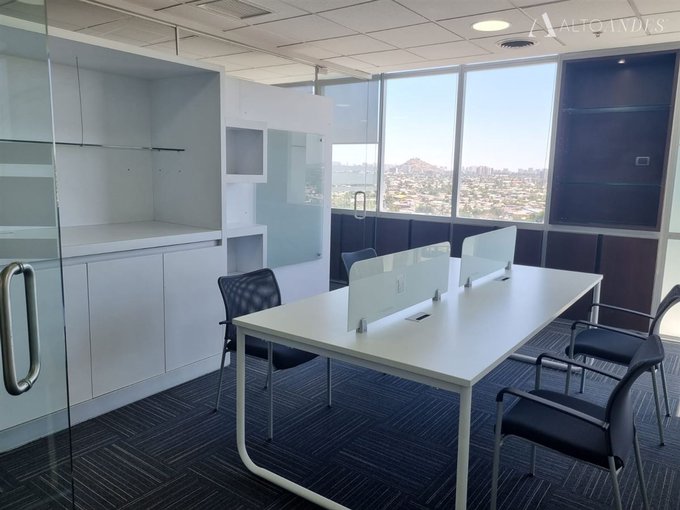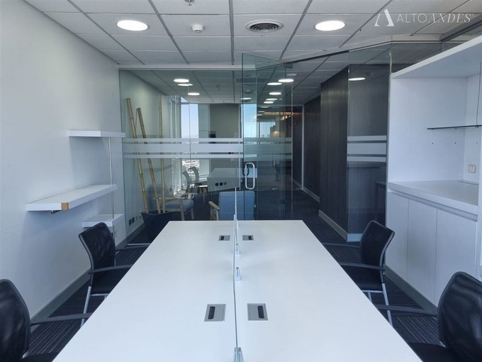 Habilitada alto estándar. Se encuentra emplazada en el piso 14 de un edificio clase A+ con vistas panorámicas. Cuenta con alfombra en palmetas de alto tráfico, cielo americano, luminarias LED, tabiquería vidriada, aire acondicionado y calefacción. La oficina se compone de Hall, recepción, 2 privados + 1 sala de reuniones, espacio para escritorios de trabajo, 1 baño y kitchen.