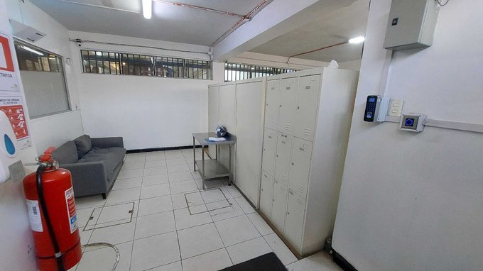 Doble portón metálico (acceso peatonal y otro para carga).