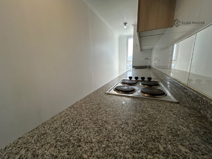 Cocina separada, con cubierta de granito, encimera eléctrica, horno y campana. Amoblada