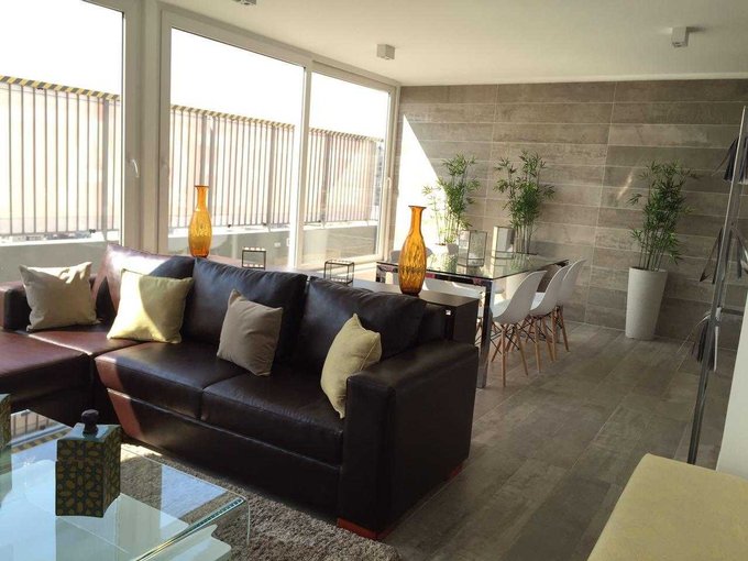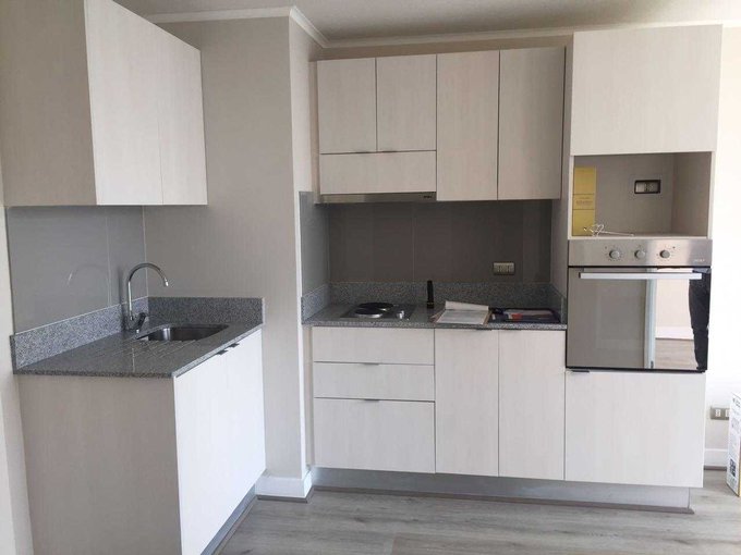 Departamento de un dormitorio, baño , cocina americana, living y conexión a lavadora. Terminaciones: piso flotante en todo el dpto exceptuando el baño,ventanas termopanel de PVC, encimera eléctrica de dos platos, cubierta de granito, campana y horno eléctrico.