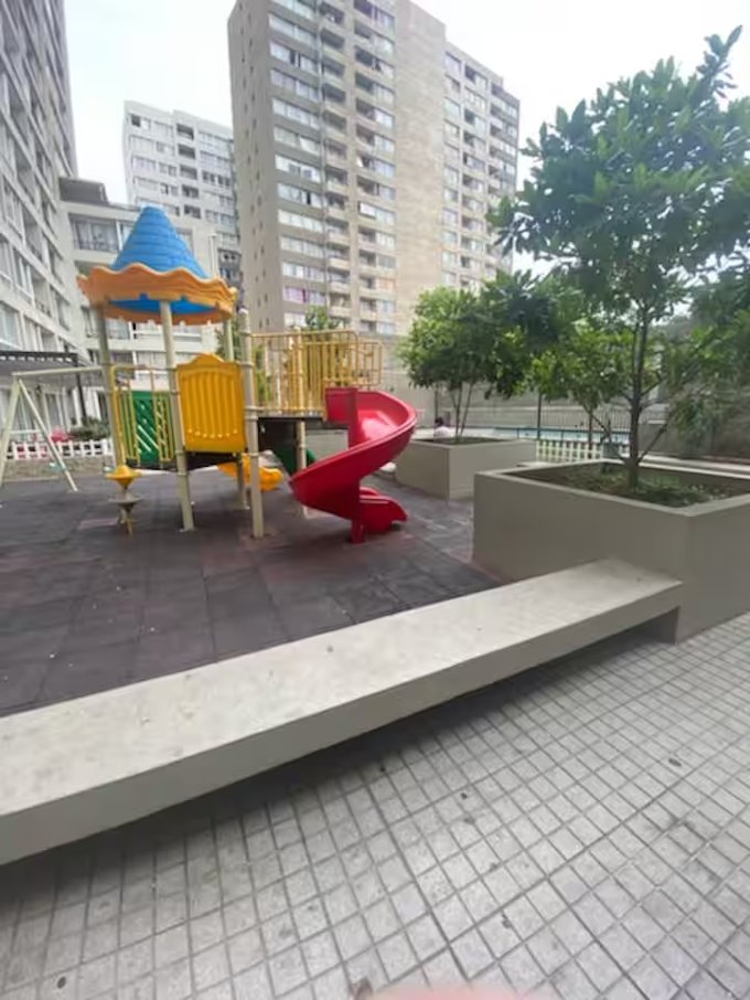 En primer piso dentro del condominio se encuentra patio interior ofreciendo cómodos lugares de esparcimiento, juegos infantiles y la piscina. Al costado se encuentra salones multiusos para eventos, sector de lectura y sector con mesa de pool. Cuenta con pista de trote dentro del condominio. Quinchos se encuentran en piso 23 con grandiosa vista.