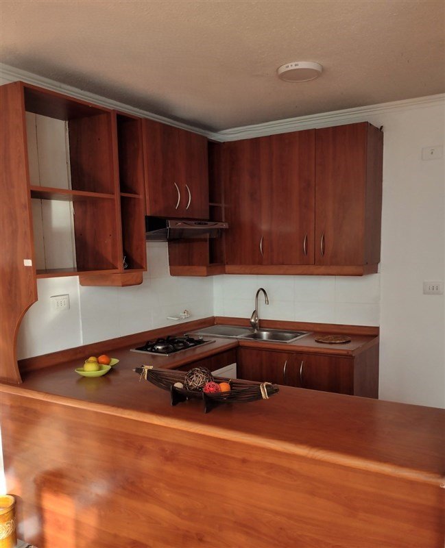 En primer nivel cuenta con cocina americana amplia equipada con cocina encimera ,horno empotrado y campana y muebles de cocina, amplio living comedor y despensa en hall, con vista al oriente frente al Hipódromo, con lamparas y barras de cortinas instaladas , termo electrico.