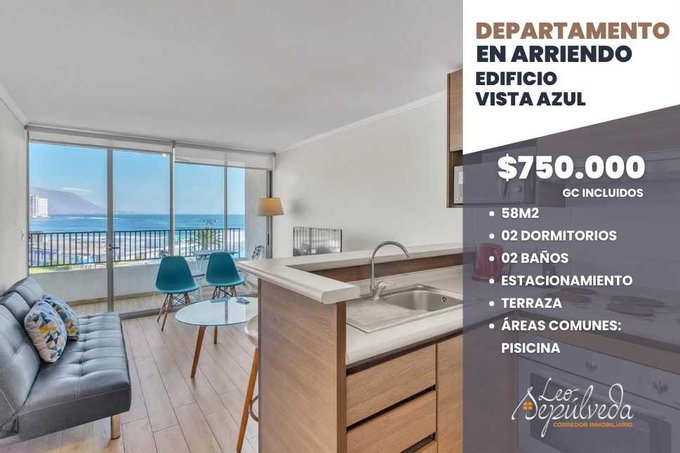 Departamento en arriendo en Iquique por $750.000 mensuales con gastos comunes incluidos.