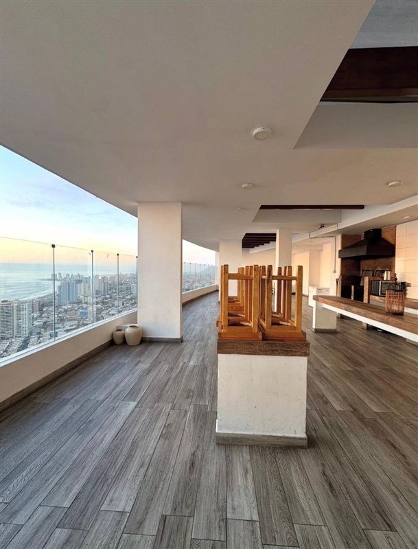 El departamento es amplio y luminoso y sus espacios bien distribuidos brindando una sensación de calidez. La cocina cuenta con los electrodomésticos necesarios para una estadía cómoda y práctica, mientras que el dormitorio ofrece un espacio íntimo para el descanso, en sus áreas comunes destacan la piscina, jacuzzi, quinchos y sala de cine.