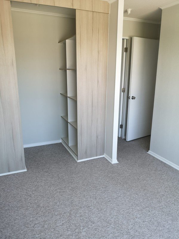 Dormitorios alfombrados, con cortinas roller instaladas.