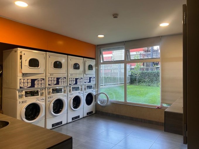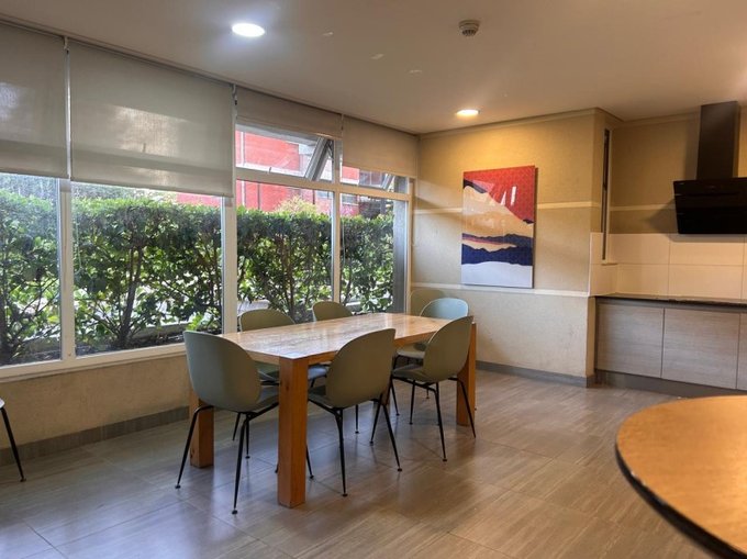 El edificio cuenta con quincho , piscina, lavandería, parque infantil, gimnasio, salón de eventos, estacionamientos de visita, y recepción 24/7.