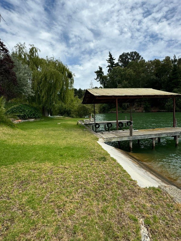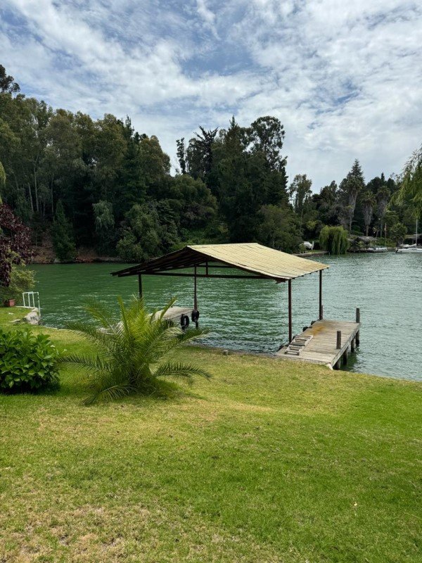Casa principal son 3 piezas con cama matrimonial y 1 habitación con 2 camarotes 3 baños con ducha / tina, full equipada Cocina equipada, quincho para asado, piscina, muelle, precioso jardín,