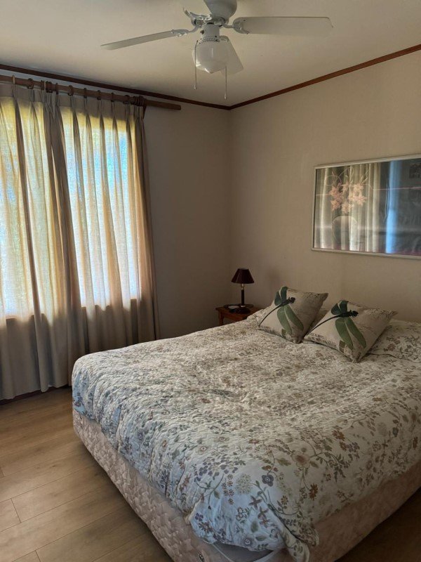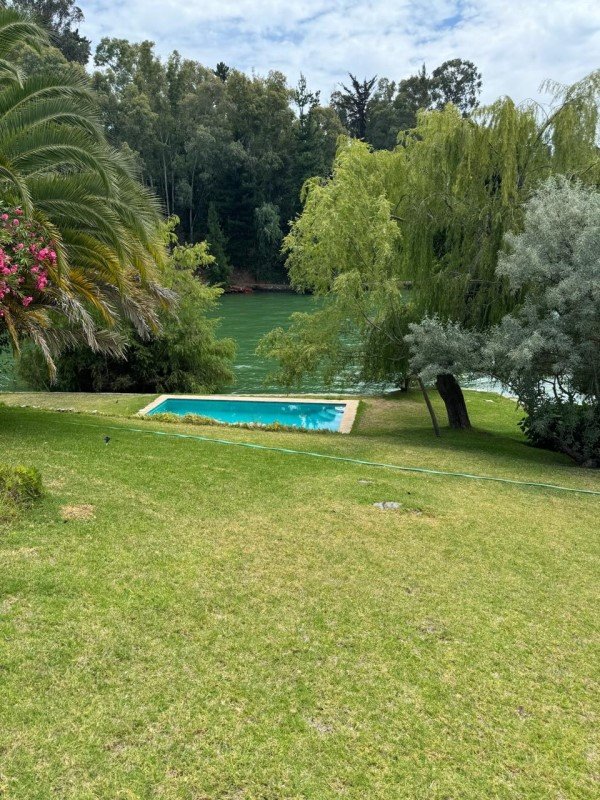 Casa principal son 3 piezas con cama matrimonial y 1 habitación con 2 camarotes 3 baños con ducha / tina, full equipada Cocina equipada, quincho para asado, piscina, muelle, precioso jardín,