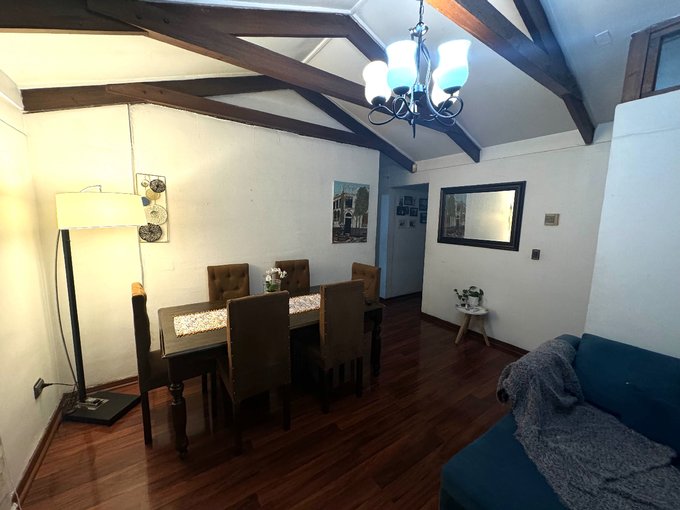 1 aire acondicionado en living comedor, 2 baños, principal con extractor de Aire. Está casa es perfecta para familias u organizaciones que buscan comodidad y cercanía al Metro. Cocina con abundantes muebles, porcelanato incluso en muros. Además, cuenta con 2 a 3 estacionamientos (dependiendo del tamaño de los vehículos) y 1 bodega para guardar lo que necesites. El amplio terreno de 204 metros cuadrados ofrece un espacio ideal para disfrutar al aire libre, destinar un espacio para terraza a la salida de la casa o disfrutar en el sector del quincho en el patio trasero el cual tiene pasto sintético, piedras decorativas y disfrutar de la sombra y frutos del naranjo que tiene al lado del quincho. Si esto fuera poco cuenta con amplio espacio de loggia y otro espacio para oficina en sector camino a la loggia y como complemento para dejar algunos electrodomésticos de la cocina como refrigerador, congeladora , etc