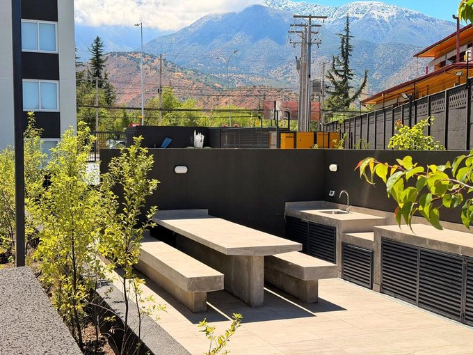 Moderno y funcional departamento 2D+2B que combina diseño contemporáneo y terminaciones de alto estándar. Cocina equipada con encimera vitrocerámica, horno eléctrico, campana y cubiertas de granito. Incluye refrigerador, futón y cortinas roller, listos para usar. Disfruta de amplios espacios con piso flotante, ventanas termopanel, baño con espejo LED touch y terraza vidriada con iluminación LED. Con chapa electrónica y ojo digital, este modelo ofrece confort, seguridad y estilo, ideal para quienes buscan vivir o invertir con calidad y conectividad.