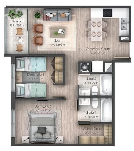 - 2 Baños completos