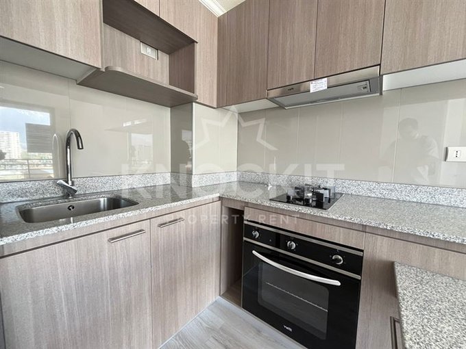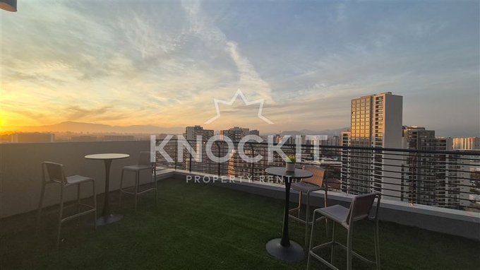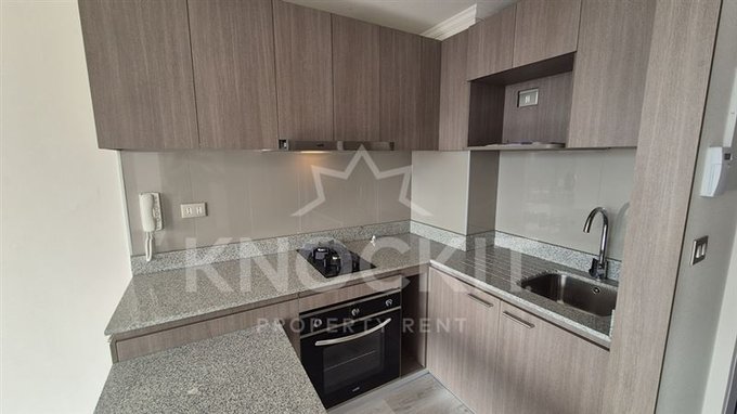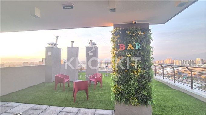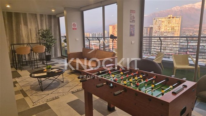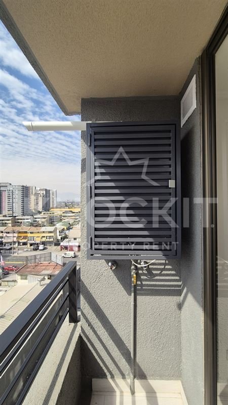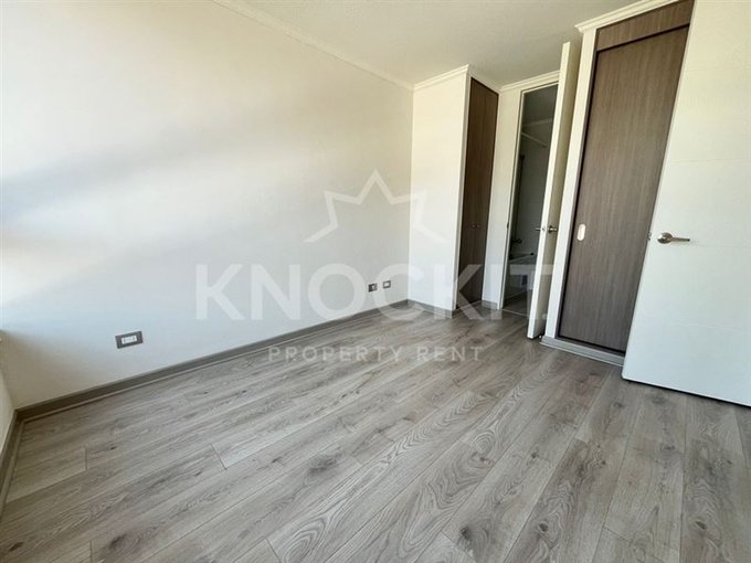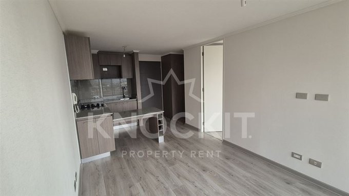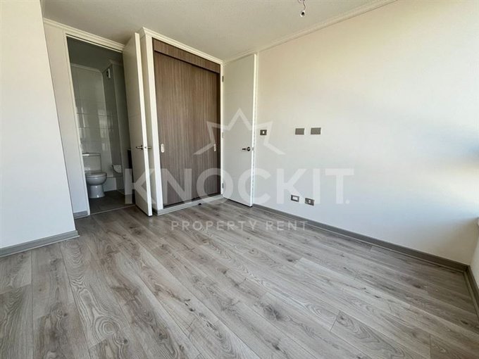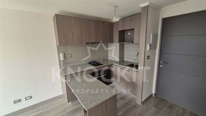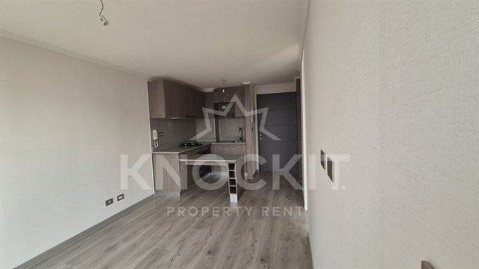 El departamento incluye un dormitorio acogedor, un baño completo y una cocina equipada con encimera metálica y horno eléctrico. Las terminaciones son de alta calidad, con ventanas de termopanel y pisos de vinilo en el estar y dormitorio, y porcelanato en el baño. Además, cuenta con conexión para lavadora y un sistema de alarma para mayor seguridad.