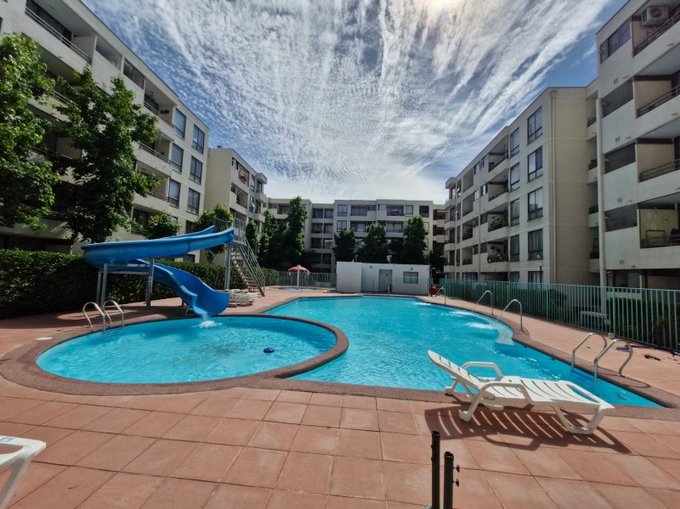 Excelentes servicios cercanos como supermercados, colegios y parques. La comunidad cuenta juegos infantiles, piscina con tobogán y juegos acuáticos, quincho, estacionamientos de visita, conserjería 24 Horas, salón multiuso, gastos comunes aproximados son de $65.000 pesos.