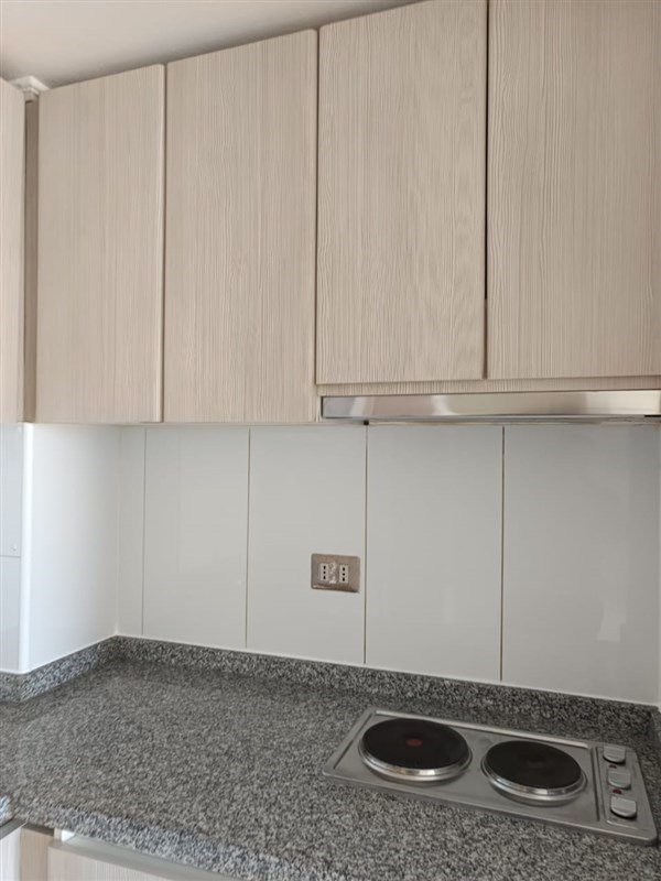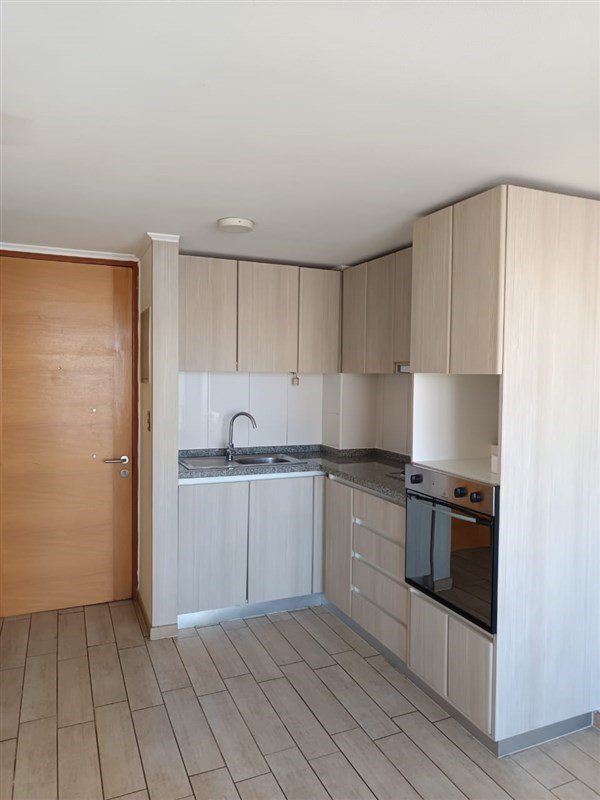 En arriendo espectacular departamento de 1 dormitorio con baño en suite, living comedor y cocina americana full equipada, con horno empotrado, campana y encimera, piso porcelanato en living, comedor y cocina, y cerámico en baño, piso flotante dormitorio, clóset, agua caliente por caldera, full electric, termopaneles y cortinas roller.