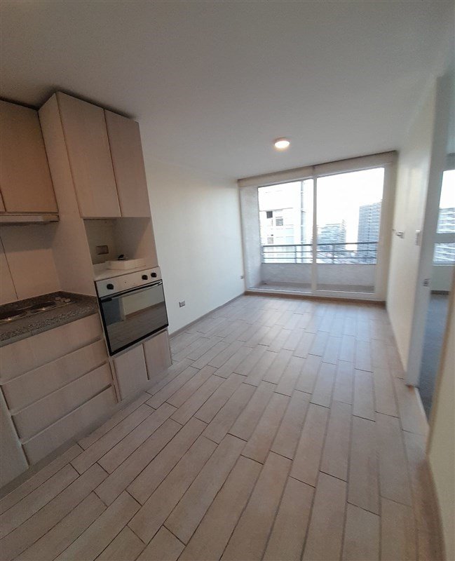 En arriendo espectacular departamento de 1 dormitorio con baño en suite, living comedor y cocina americana full equipada, con horno empotrado, campana y encimera, piso porcelanato en living, comedor y cocina, y cerámico en baño, alfombra en dormitorio y clóset, agua caliente por caldera, full electric, termopaneles y cortinas roller, terraza.