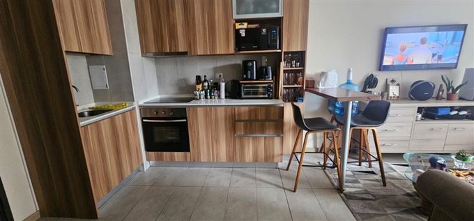 Cocina amoblada con horno eléctrico, encimera, campana. El depto. tiene conexión a lavadora.